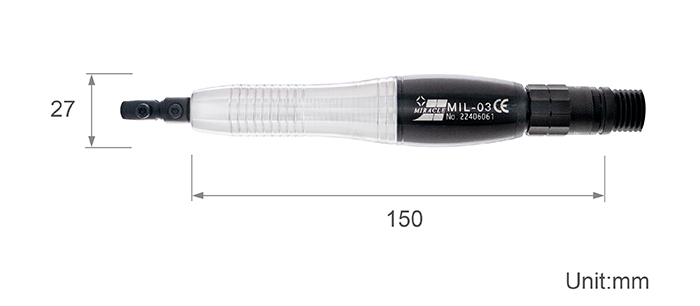 行程 0.3mm 適合模具細微部分的加工,常應用於電子模等精密模具。 若是較大的面積或粗拋,可選擇行程 0.7mm 或 1.0mm。 轉速 40,000spm 重量 190g 行程 0.3mm 尺 寸 隨 附 配 件 Ø3mm+1mm 夾頭 1mm 夾頭 3mm 夾頭 10mm 彈性夾頭 六角扳手 消音綿